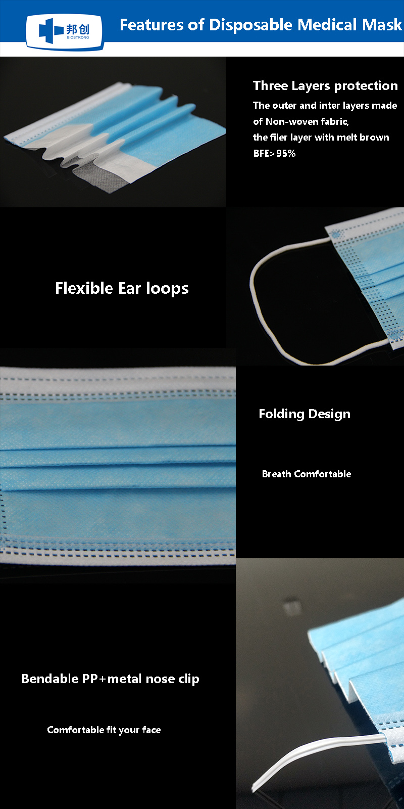 Material: the middle layer is made of melt blown and the outer/ inside layers is Non-woven fabric