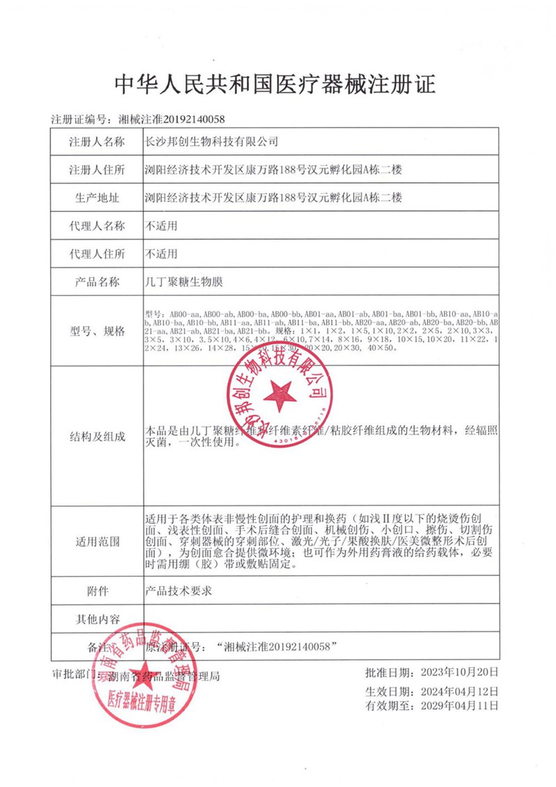 幾丁聚糖生物膜-注冊證