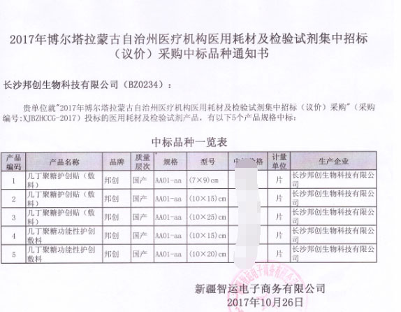 恭賀我公司產(chǎn)品在2017年新疆博爾塔拉蒙古自治州醫(yī)用耗材招標(biāo)采購(gòu)項(xiàng)目中標(biāo)